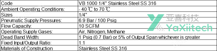 有關(guān)R.K.CONTROL放大器VB 1000 1/4" Stainless Steel SS 316更詳細(xì)的信息或者其他放大器相關(guān)產(chǎn)品,請隨時致電亞喜科技,我們將盡全力解決您的問題。